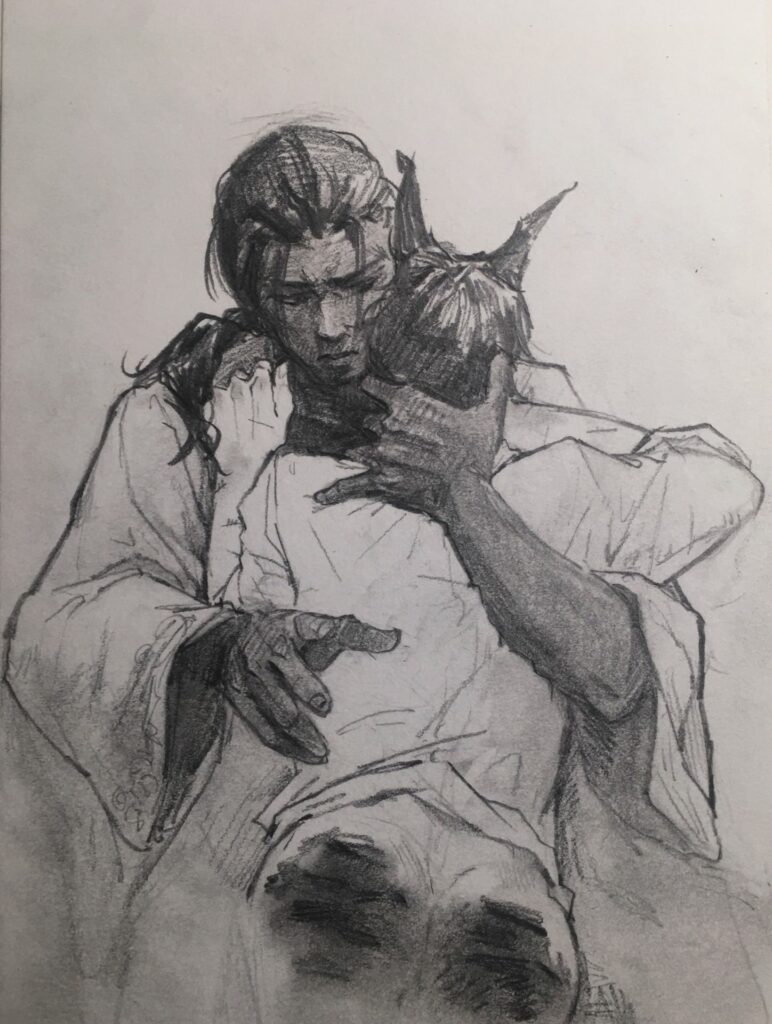 昨天他来领了第三天的罚之后,再加上你拥抱住了他给他安抚后,他就紧紧的抱住了你,并且又疼又累的瘫在你怀里睡着了。